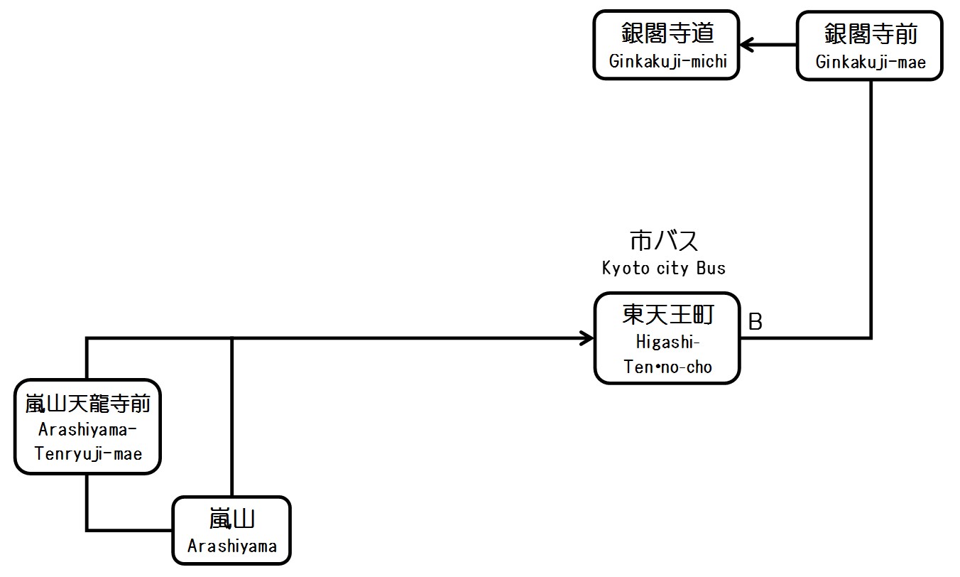 | 450円 | 2回 | 嵐山中心部~駅→徒歩すぐ バス停~銀閣寺→徒歩およそ8分 | 約1時間強~1時間20分 |