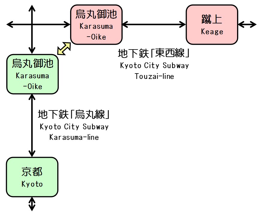 地下鉄の烏丸御池での乗り換えについてですが、