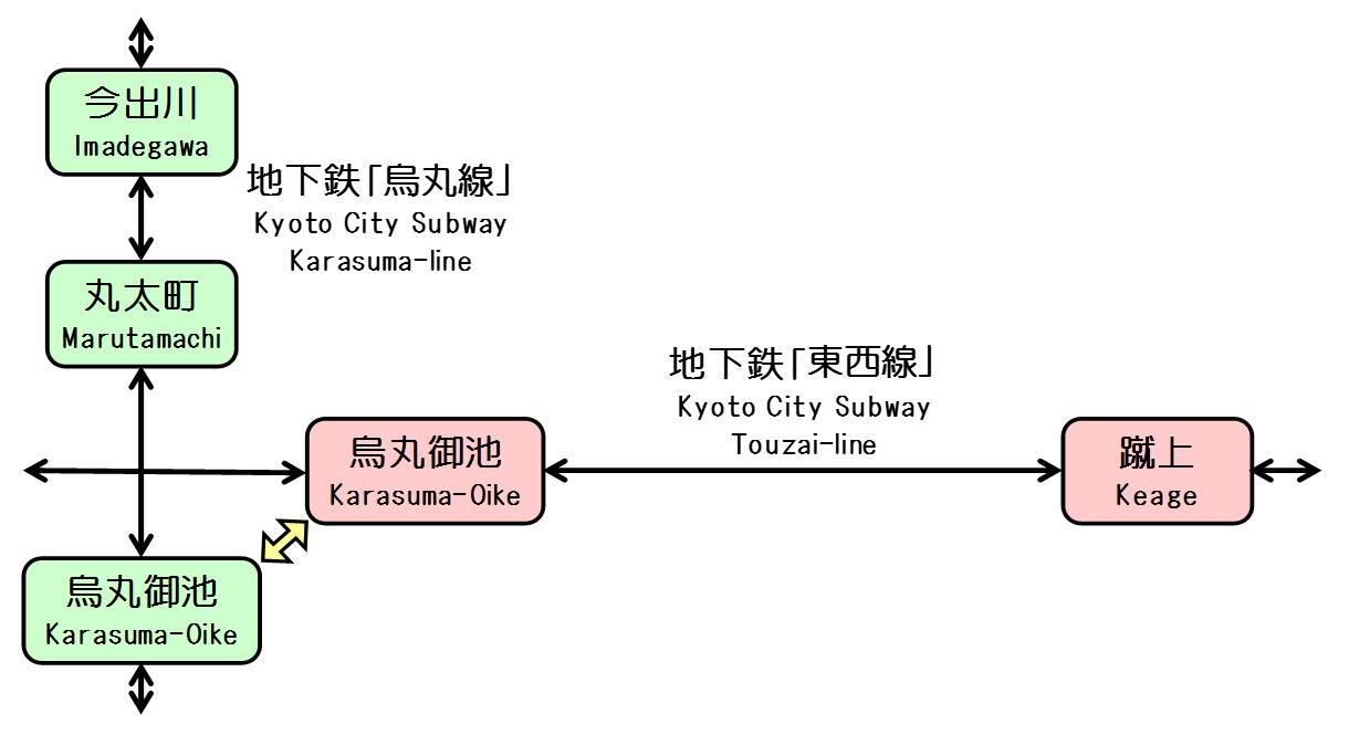 ちなみに地下鉄の烏丸御池での乗り換えについてですが、