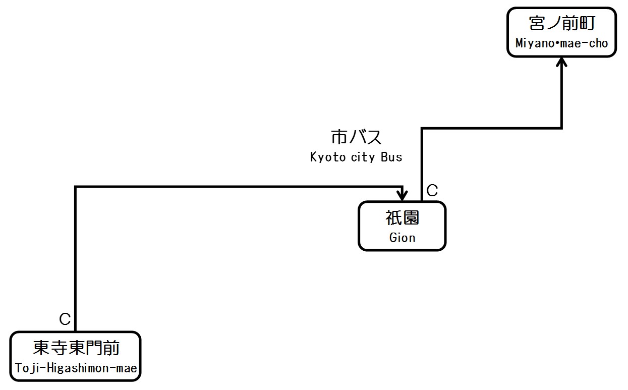 上記のマップのように、東寺の周辺にはいくつかのバス停があります。