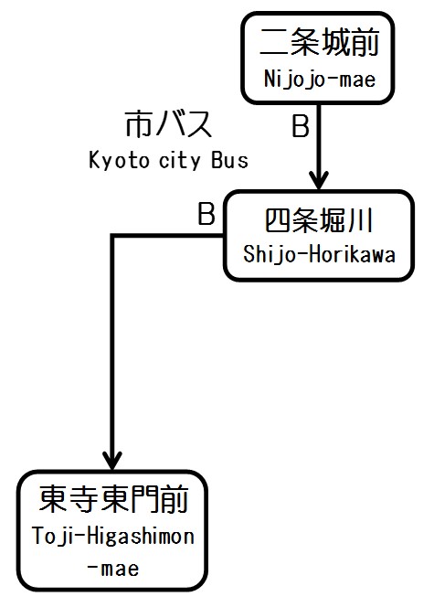 次に離れたバス停になりますが、二条駅前からは東寺に直接向かうバスがあります。